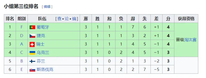 最终,欧洲杯四个小组第三成绩排名,乌克兰凭借着多一个净胜球的优势,压倒芬兰晋级16强,芬兰无缘淘汰赛。