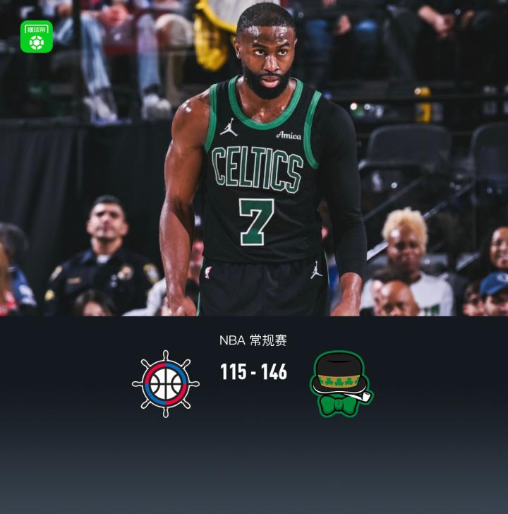 扫描下载懂球帝首页>动态> 凯尔特人146-115终结快船6连胜,布朗50分,小琼斯伤退