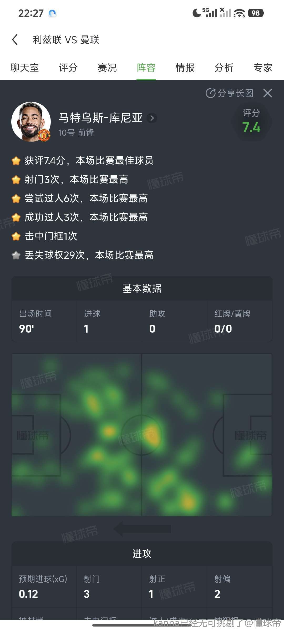 扫描下载懂球帝首页>动态> 打入一球,库尼亚当选利兹联vs曼联全场最佳球员