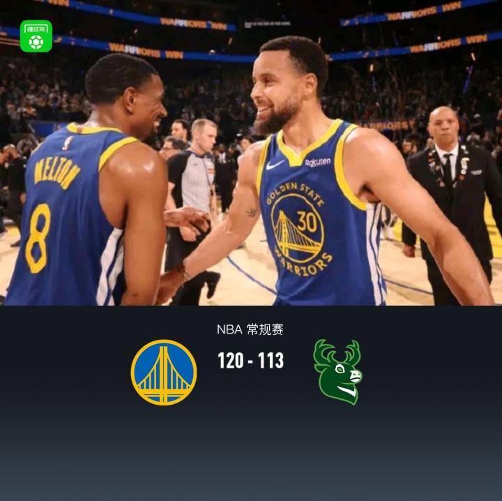 扫描下载懂球帝首页>动态> 勇士120-113力克雄鹿,库里31+7+7,字母哥34+10
