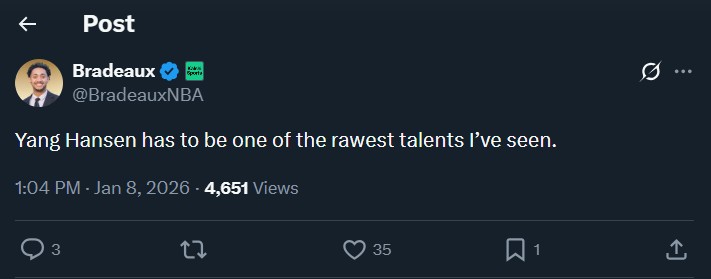 扫描下载懂球帝首页>动态> 证明自己,火箭记者:杨瀚森是我见过的最有天赋的球员之一
