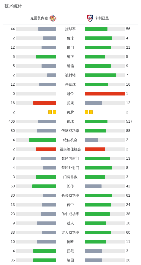 扫描下载懂球帝首页>动态> 克雷莫内塞2-2卡利亚里,丹尼斯-约翰森破门,特雷皮扳平