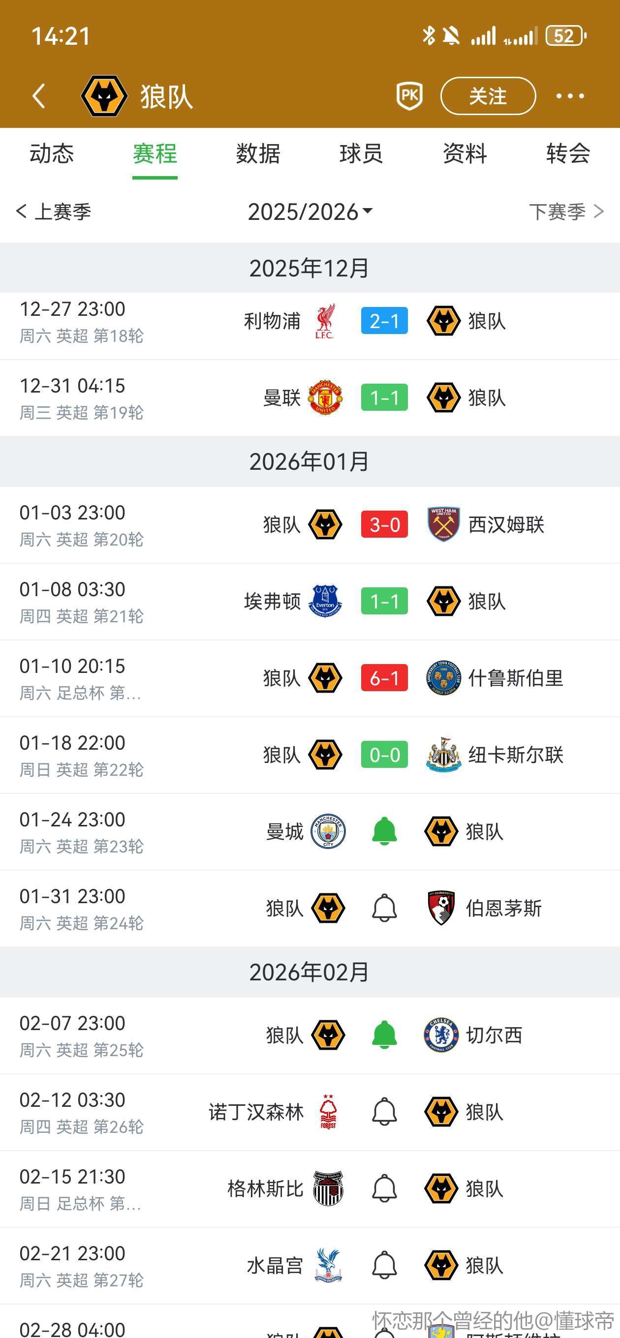 2025-26赛季英超第19轮,狼队客场逼平曼联终结12连败。此战之后,低迷了半个赛季的狼崽子仿佛被开了光,连续五场不败,其中英超一胜三平,四轮积分达到了上半赛季的三倍。本周末即将迎战状态低迷的曼城,他们还能继续逆袭之路吗?
