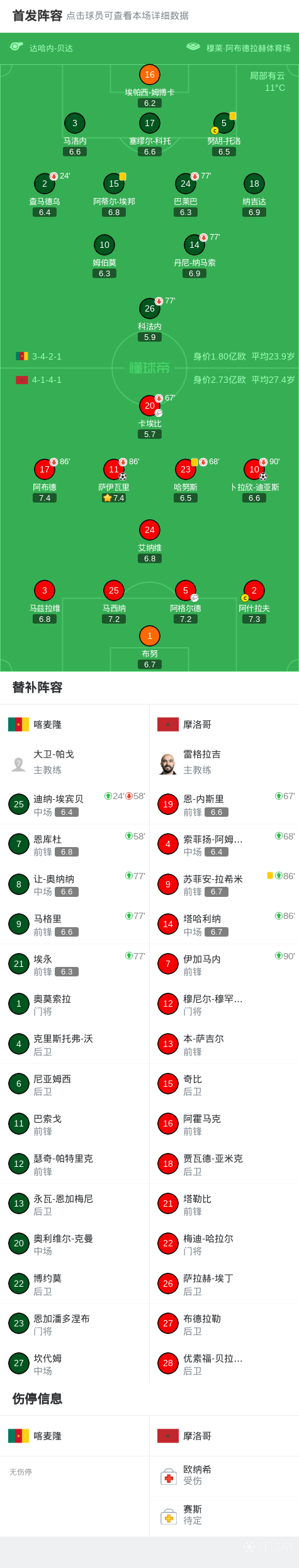 3.在各项赛事中,喀麦隆在最初的13场交锋中保持不败(6胜7平),但摩洛哥最近3场全胜。