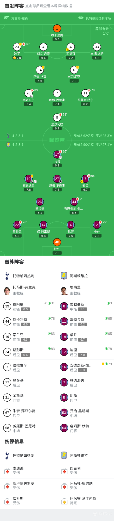 这比赛真看的我心惊胆战的,但也并不太在于热刺下半场多次的危险进攻,我是在意热刺这犯规我真不想再看到维拉有球员伤了