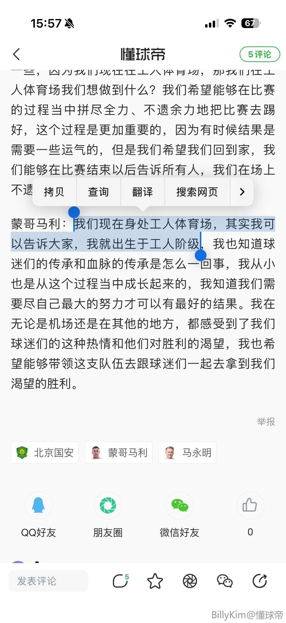我们现在身处工人体育场,其实我可以告诉大家,我就出生于工人阶级,我也知道球迷们的传承和血脉的传承是怎么一回事,我从小也是从这个过程当中成长起来的,我知道我们需要尽自己最大的努力才可以有最好的结果。