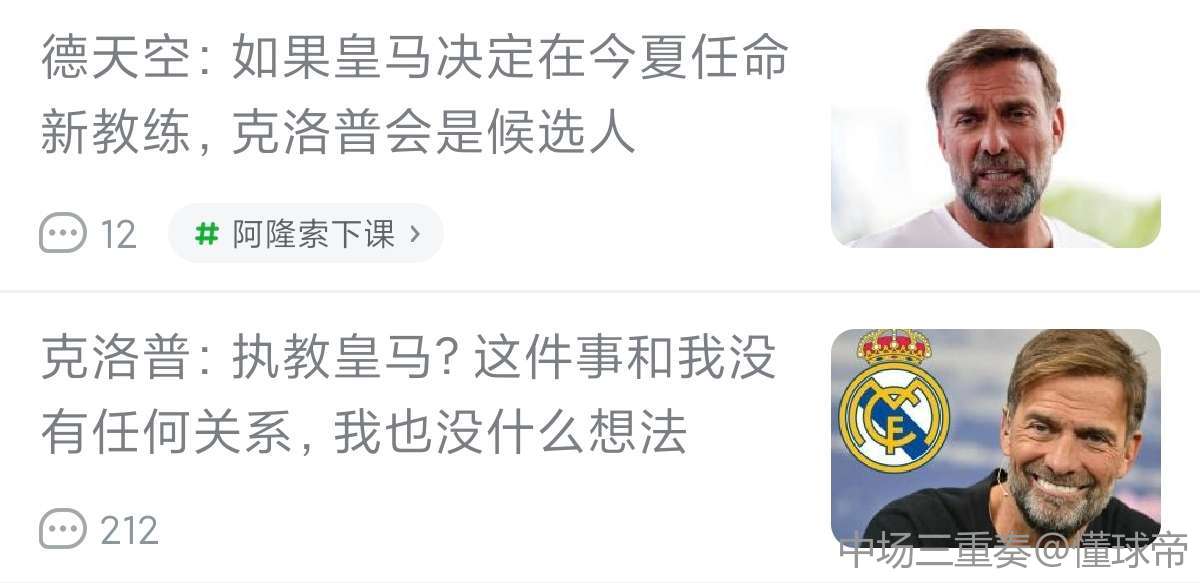 扫描下载懂球帝首页>动态> 德天空:如果皇马决定在今夏任命新教练,克洛普会是候选人