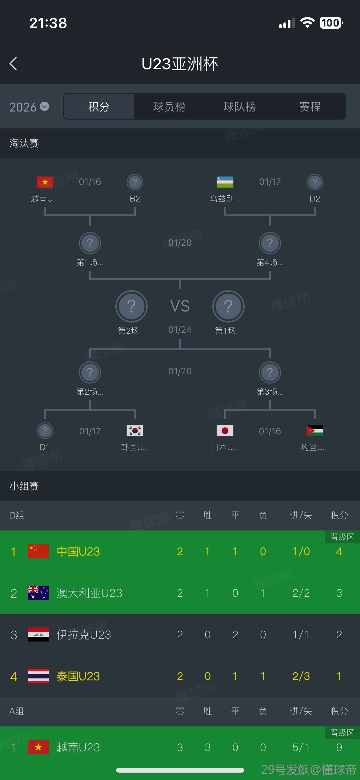 懂球帝首页>动态> U23国足所在D组头名将在1/4决赛战韩国,第二名对阵乌兹