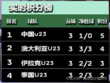 2026年U23亚洲杯小组赛1胜2平小组第二出线
