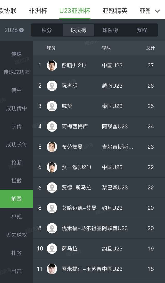 3场比赛,俩哥们儿扑救16和解围37登顶,唯一进球也是由彭啸打入,没得说后防铁闸