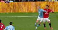 第72分钟,卡塞米罗和哈兰德接触后倒地,裁判没有吹罚犯规