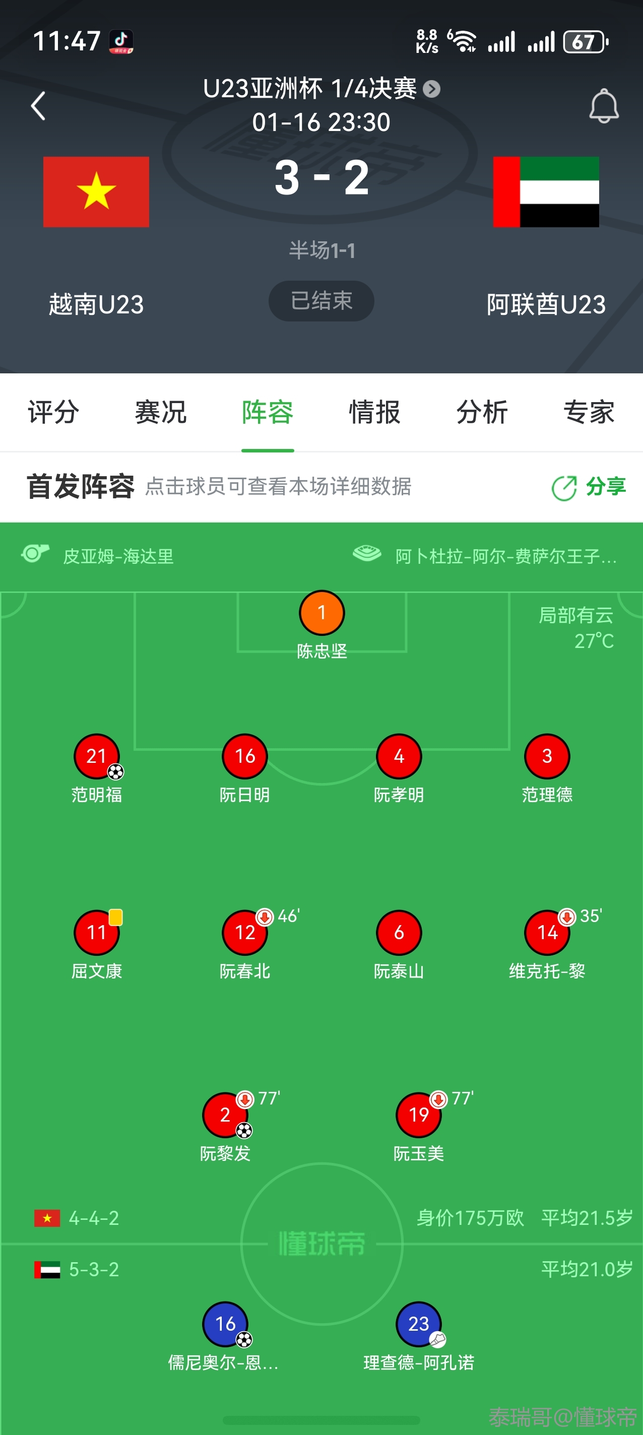 看了下越南战绩,预选赛全胜,小组赛全胜,1场淘汰赛也是赢的,连平局都没有,全胜战绩。越南什么时候这么强了!