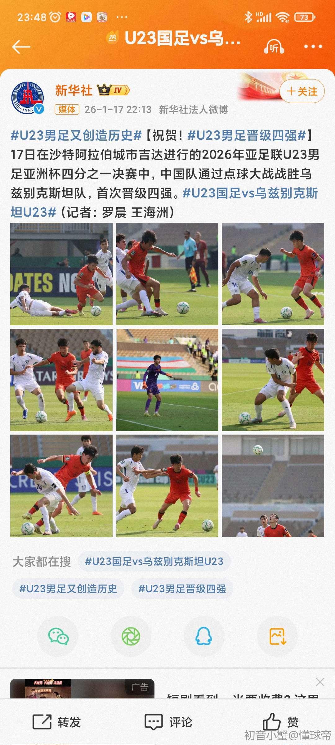 中国必胜,见证中国队历史性时刻(上电视了