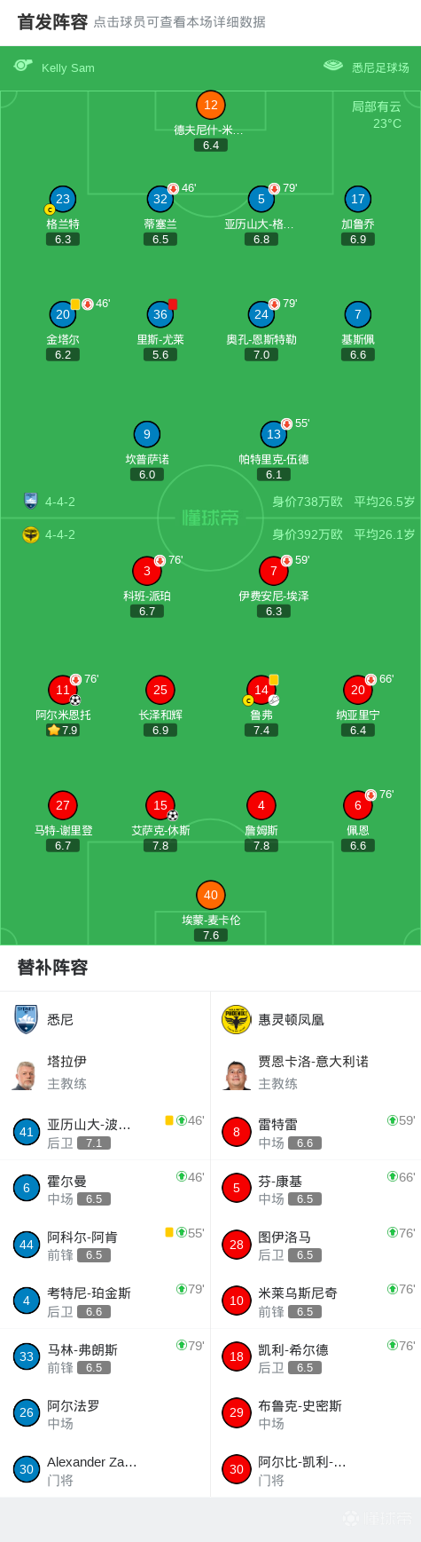 第29分钟,阿尔米恩托任意球打在人墙身上折射入网,惠灵顿凤凰1-0悉尼