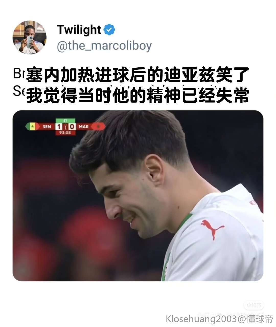 今年非洲杯他的贡献比阿什拉夫都大,摩洛哥能走到这迪亚斯尽力了,因为一个点球磨灭全部太幼稚了