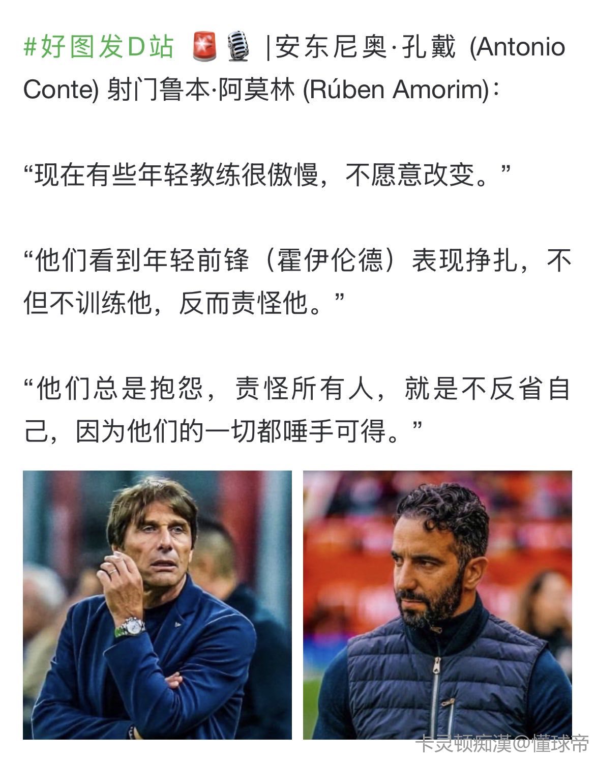 阿莫林不见得多坏,但这个人说话太直接,缺少更衣室管理手段。 同时抗压能力也真的太弱了,可能年轻教练里,他应该最弱的了,面对困境时他永远是选择逃避,崩溃,和无奈。职教三个月就想辞职。