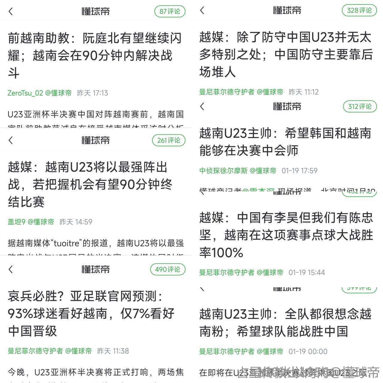 1月20日,中国U23在U23亚洲杯半决赛3-0大胜越南U23。赛后越南媒体《青年报》撰文评价本场比赛,该媒体表示,在面对一支难以预测的中国U23时,越南U23遭遇了重重困难:一方面是对手整体发挥出色,另一方面则是自身心理压力过大,更重要的是在比赛较早阶段便失去了后防中坚——“钢铁中卫”阮晓明。