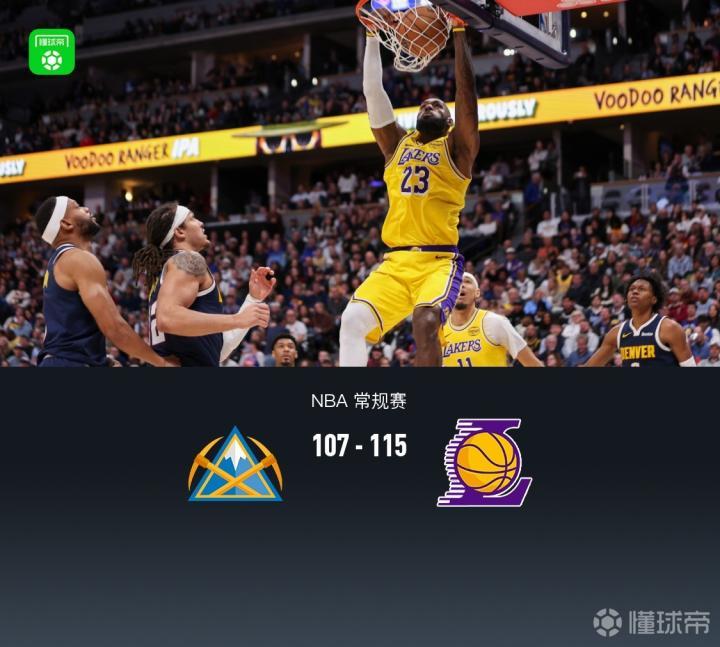 扫描下载懂球帝首页>动态> 湖人115-107逆转掘金,东契奇38+13+10,詹姆斯19+9+8,穆雷28+11