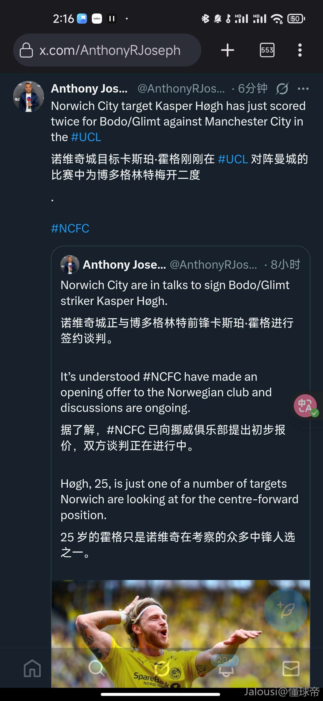 扫描下载懂球帝首页>动态> 电讯报:诺维奇有意签下卡斯帕-霍,他在昨晚对阵曼城时两分钟双响