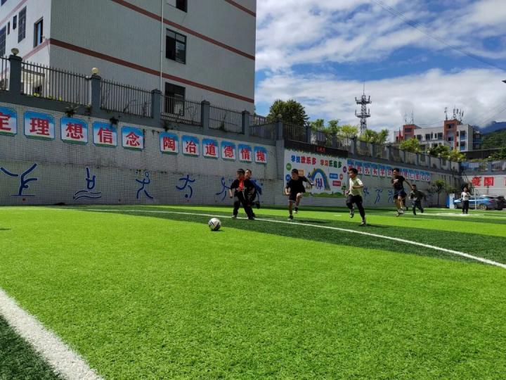 “直到去年,在壹基金与爱心人士的支持下,我们学校终于拥有了真正的足球场——脚下是松软的草皮,眼前是开阔的球场,孩子们的足球梦,终于有了更坚实的“主场”!”
