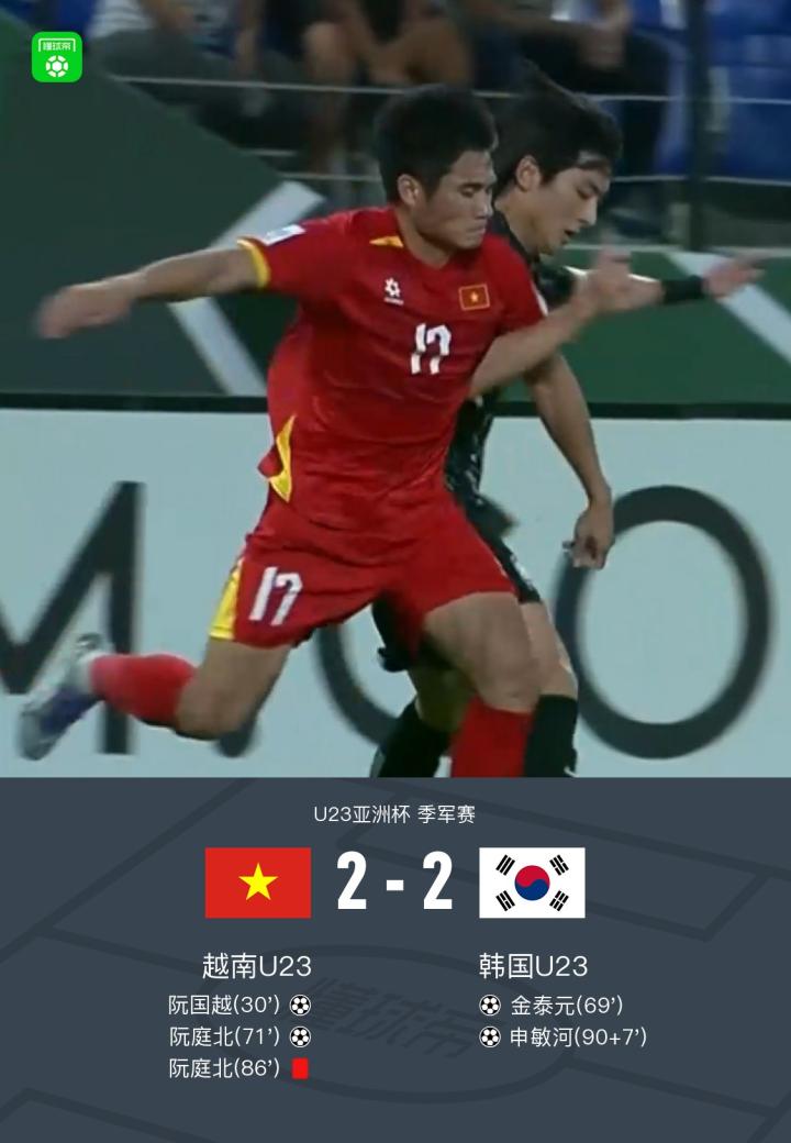 第90+7分钟,绝平!申敏河破门,U23韩国2-2