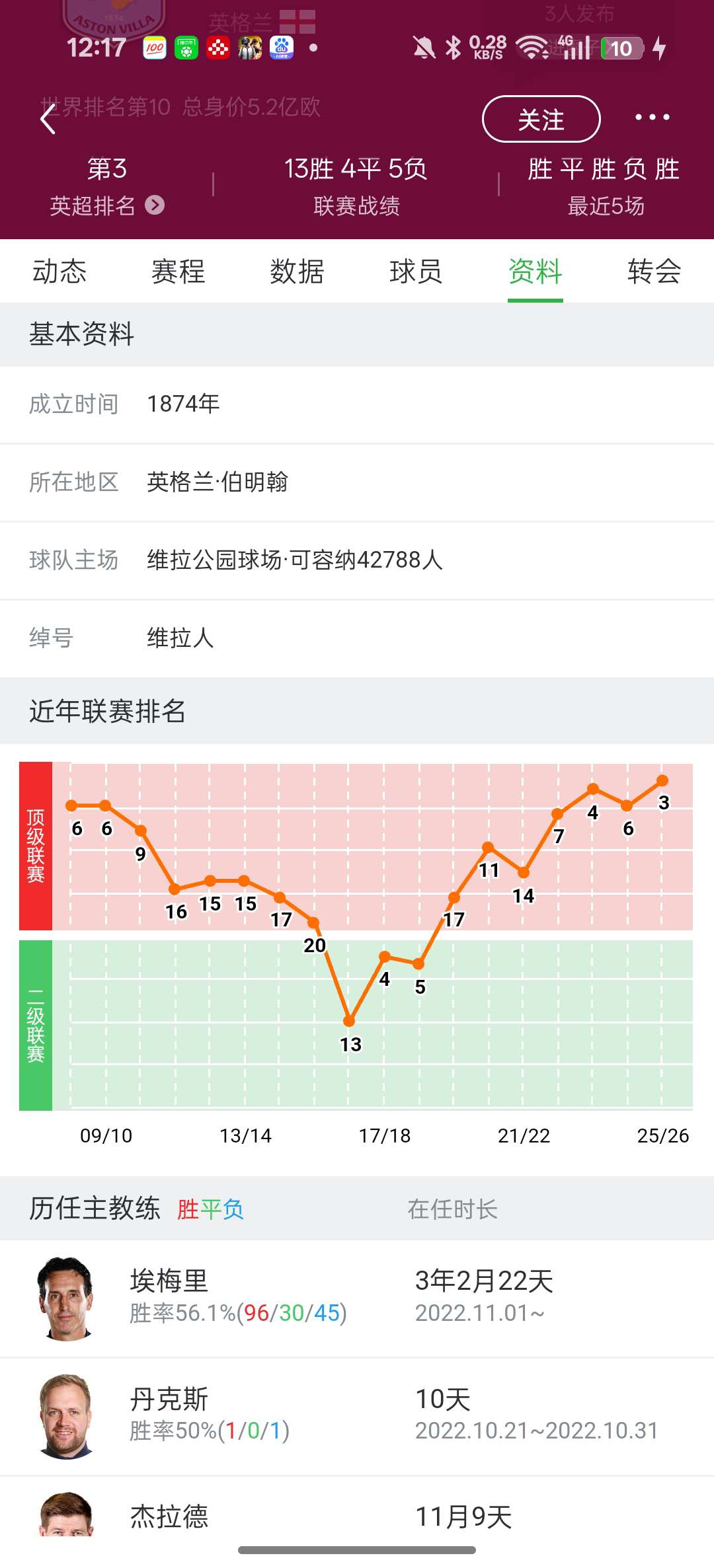 本赛季,从投入产出比来看,没有任何主教练比埃梅里表现更好。在他执教的三年里,他不仅证明了自己有能力打破“六巨头”的统治,还能确保维拉留在前六。