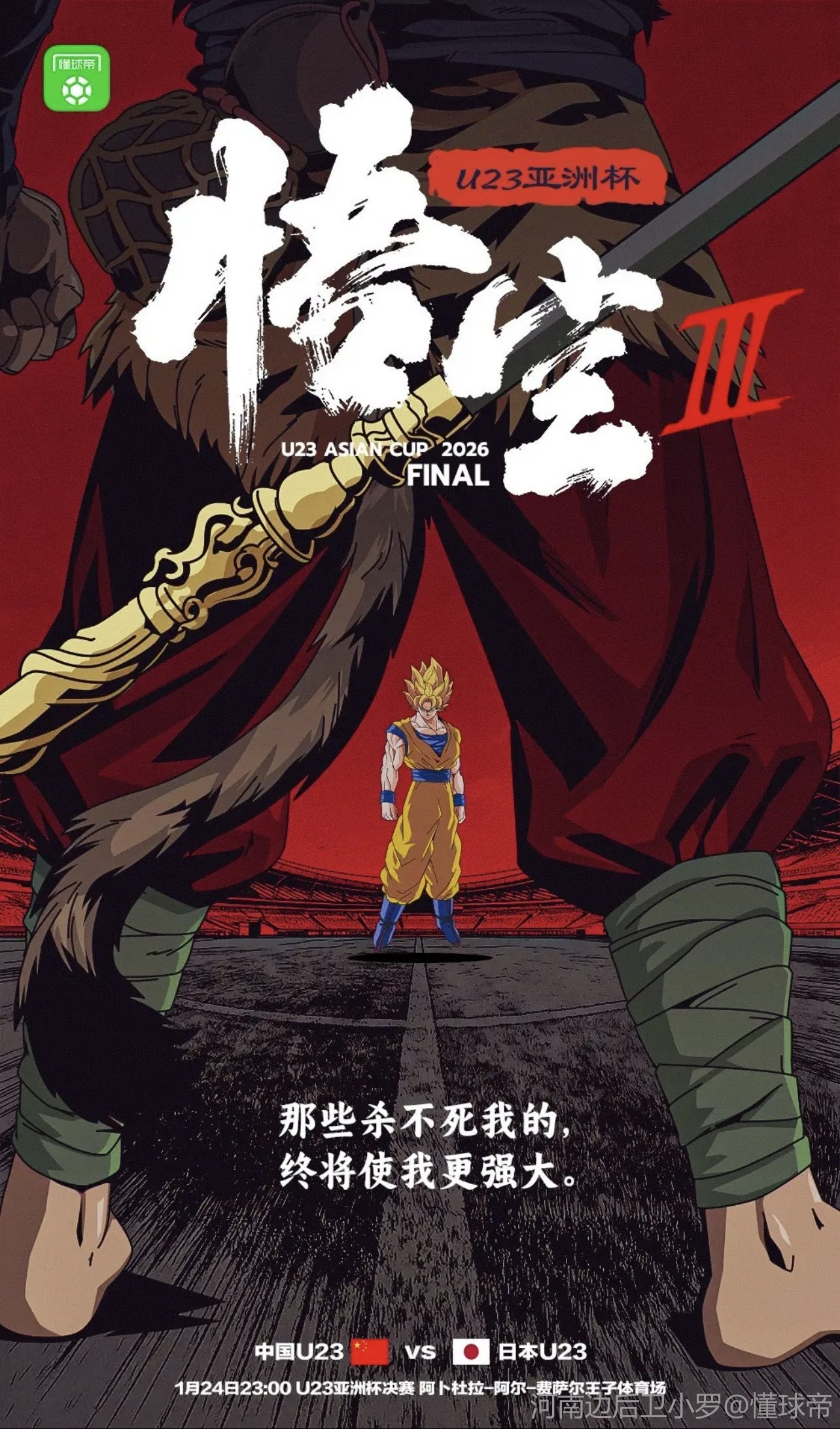 扫描下载懂球帝首页>动态> 懂球号> 懂球帝U23亚洲杯决赛海报:悟空Ⅲ