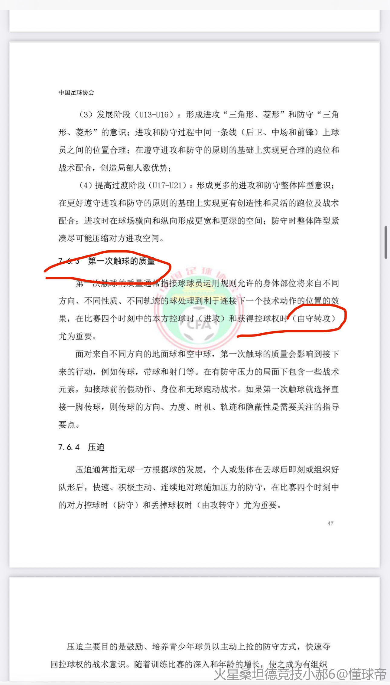 “第一次触球质量”是《中国足协青少年训练大纲》的重要内容,这个大纲是足协花大力气编成的,当年被大V自媒体们疯狂攻击,很多连大纲都没看过的球盲也就跟着起哄了。