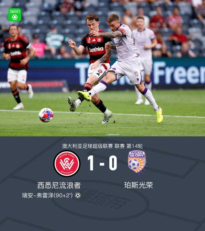 北京时间1月25日,澳大利亚足球超级联赛第14轮,西悉尼流浪者主场迎战珀斯光荣。比赛中,瑞安-弗雷泽破门得分。最终,西悉尼流浪者以1-0战胜珀斯光荣。