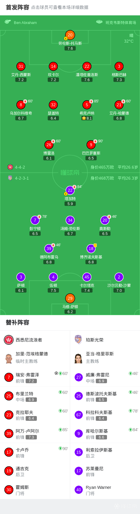 第90+2分钟,弗雷泽禁区内凌空抽射破门,西悉尼流浪者1-0珀斯光荣