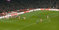 因为在第35分钟,曼联再次利用两线之间打出推进和进攻,制造了前场的角球: