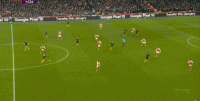 但在第34分钟,曼联打出了一次很不错的中路进攻,连续利用到了阿森纳两线之间的空间,距离扳平只差了一点点: