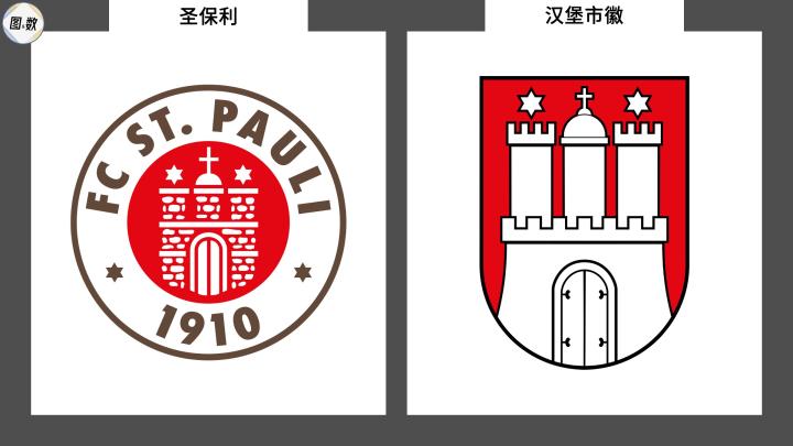 圣保利得名于汉堡市的圣保利区(圣保利意为“圣保罗之地”),其标志修改自汉堡市徽,其主场米勒门球场因靠近汉堡老城的西城门——米勒门的旧址而得名,米勒门(Millerntor)是一个音译结合意译的词语,类似于勃兰登堡门(Brandenburger Tor),二者均对门(tor)进行了意译,但对修饰词主要采取音译。