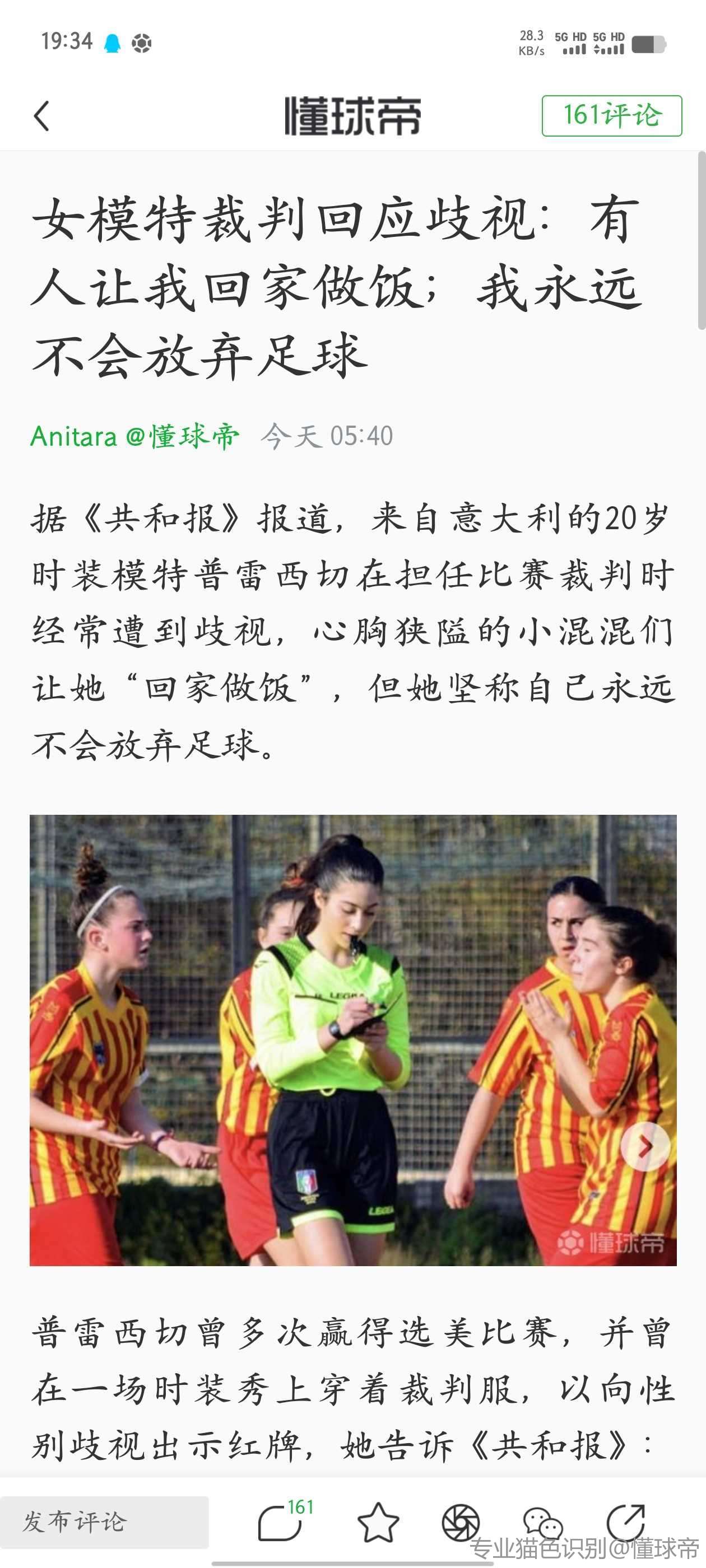 扫描下载懂球帝首页>动态> 网红和模特身份加持,意大利低级别联赛女边裁走红
