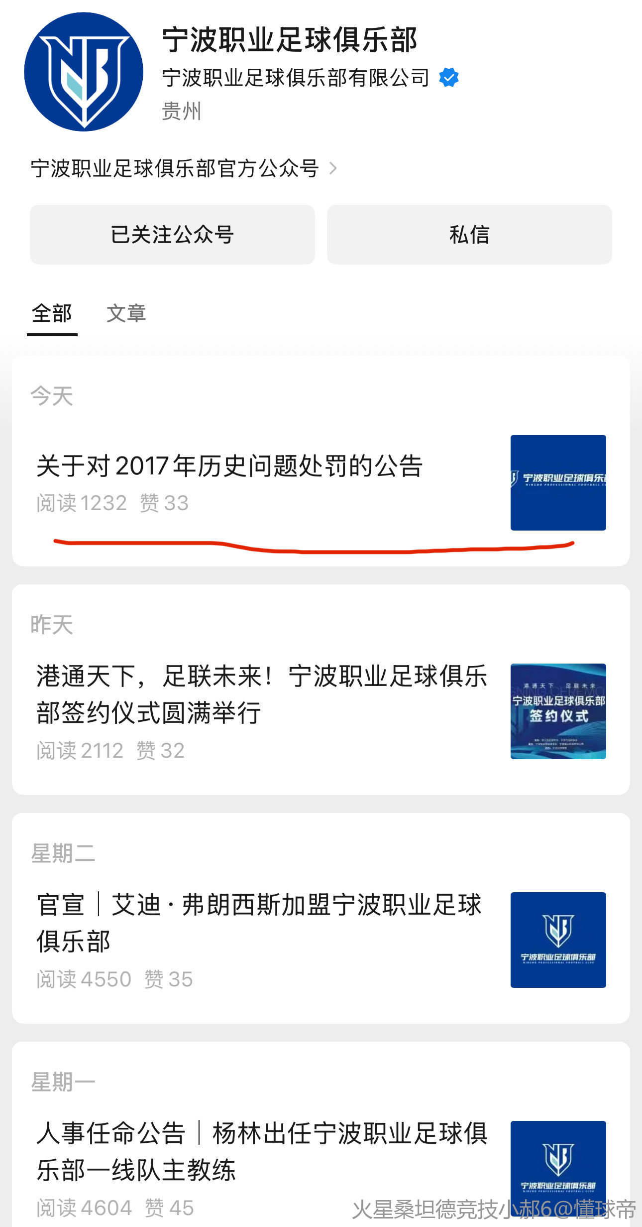 宁波职业足球俱乐部关于对2017年历史问题处罚的公告