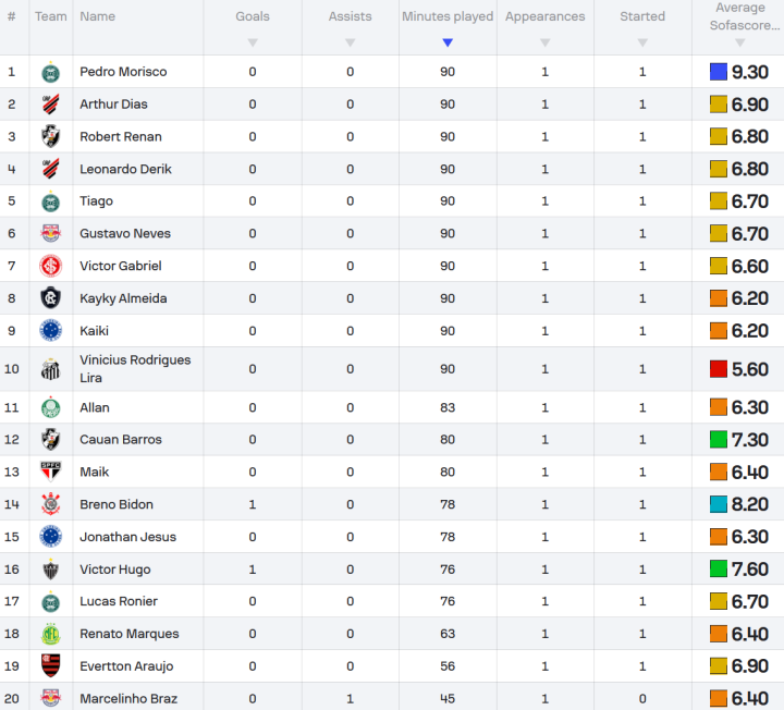 |本轮最佳阵容(SOFASCORE)