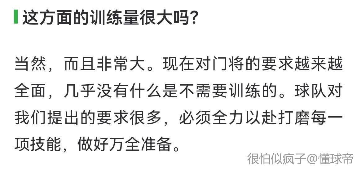 当然,而且非常大。现在对门将的要求越来越全面,几乎没有什么是不需要训练的。球队对我们提出的要求很多,必须全力以赴打磨每一项技能,做好万全准备。