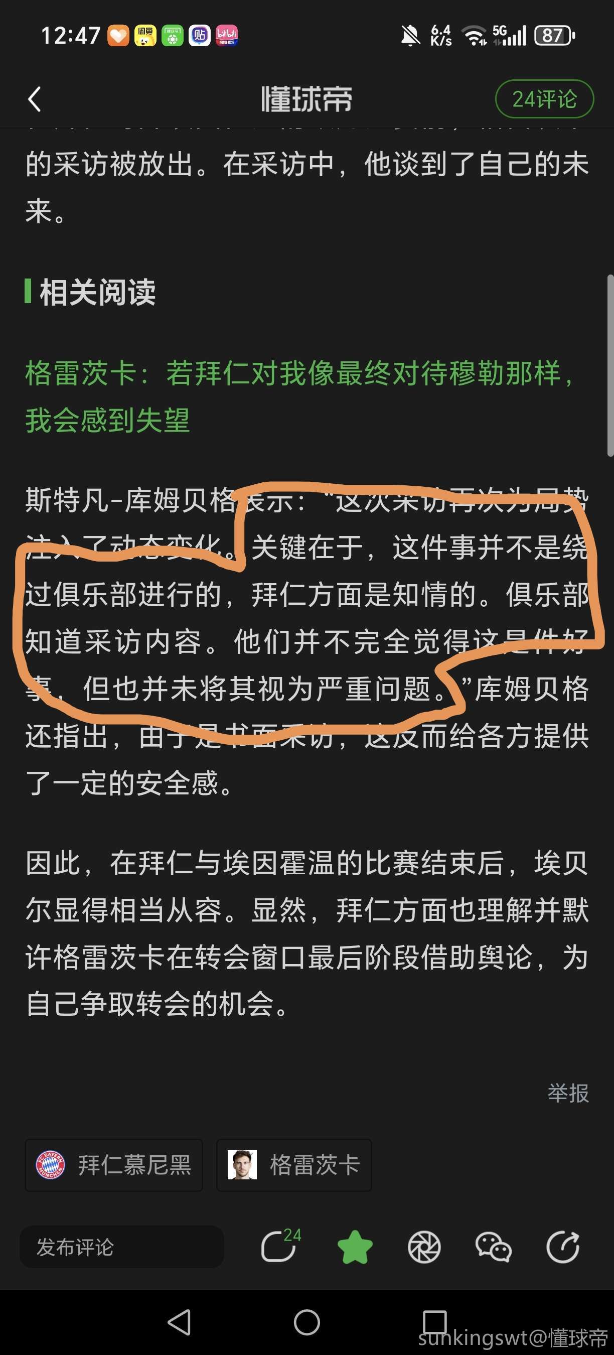 扫描下载懂球帝首页>动态> 德媒:拜仁清楚格雷茨卡的采访内容,他们不认为这是严重问题