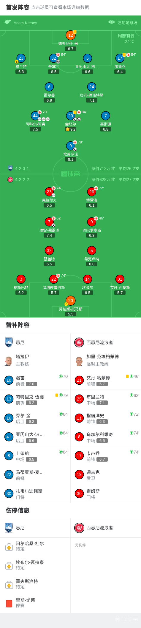 第10分钟,阿肯助攻,坎普萨诺单刀破门,悉尼1-1