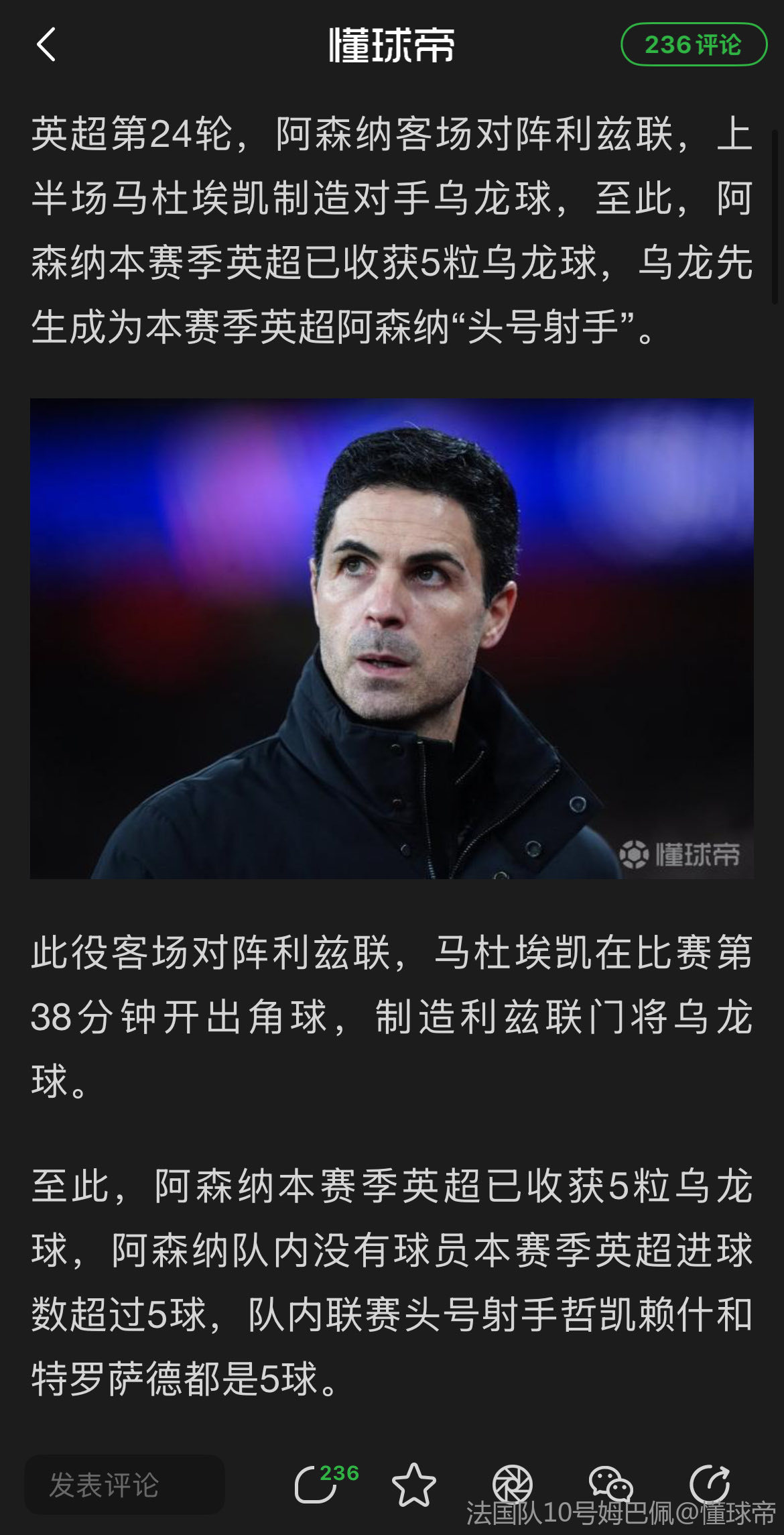 04-17 09:24‼️ 阿森纳预计马杜埃凯能出战周日对阵曼城的比赛,初步…