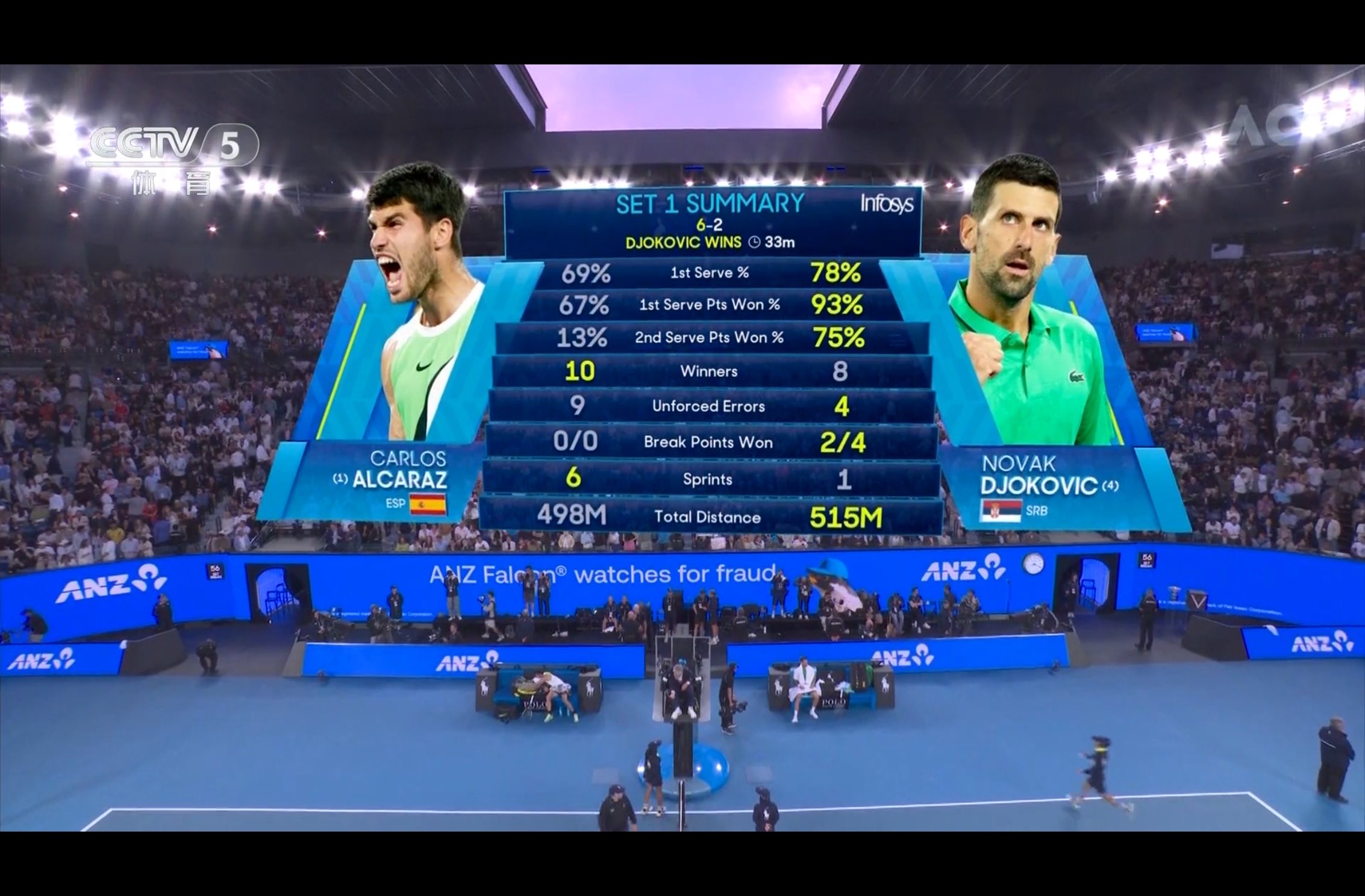 德约眼神中充满着杀气,金满贯就是对战阿卡拿到的,今天会不会还是在与对决中创造历史呢
