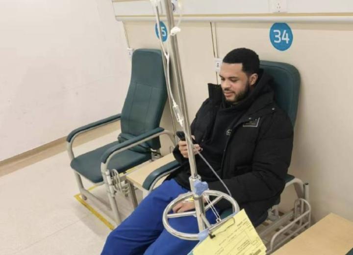 扫描下载懂球帝首页>动态> 心系球队!外援威瑟斯庞急诊室内打点滴看完青岛队整场比赛