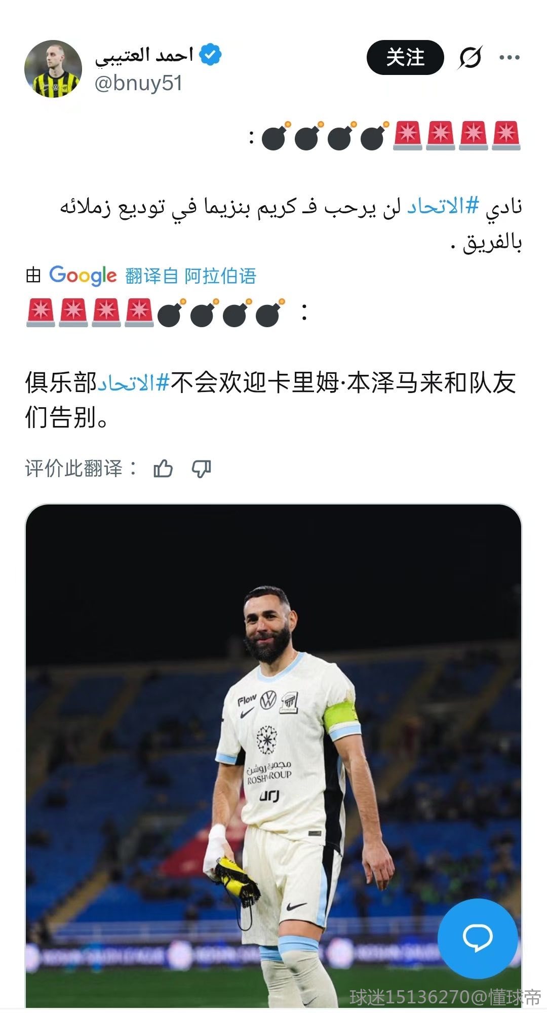 扫描下载懂球帝首页>动态> 官方:本泽马将在利雅得新月身穿90号球衣