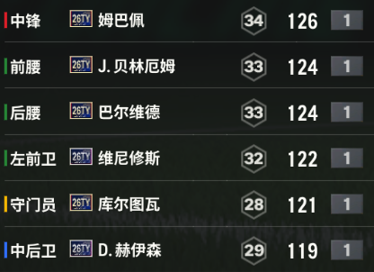 皇马套阵容强大、赛季更迭紧凑,26TY赛季这几个正选球员实力很强,但是纵向的提升没有很大。很多皇马套小伙伴更关心赫伊森,这张55脚的中后卫,有着很稳健的防守拦截性,仿佛移动城墙,适合退守禁区,和吕迪格很搭配。