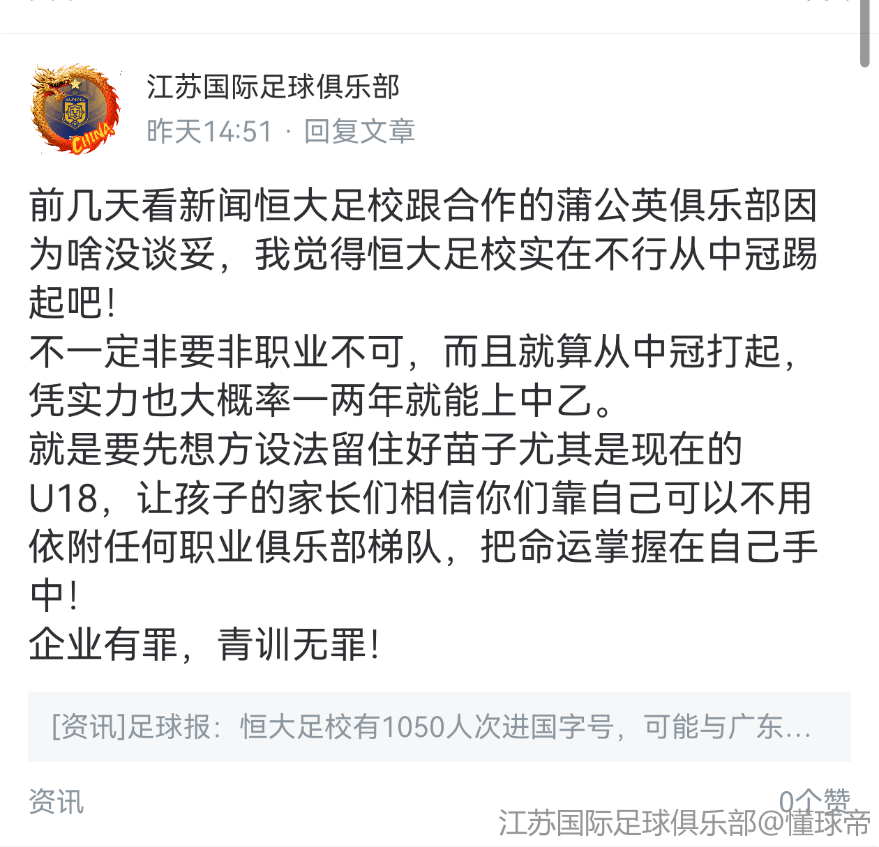 恒大足校当年被无良经纪人拐跑的球员 几乎都被淘汰了 留下来的球员有专业完善的体系成长 是越踢越好 现在更是组建一个俱乐部给青训球员练级 更是其他俱乐部给不了的 希望球员和家长三思 也希望足协保护青训 出台完善的政策 打造一个良好的足球环境