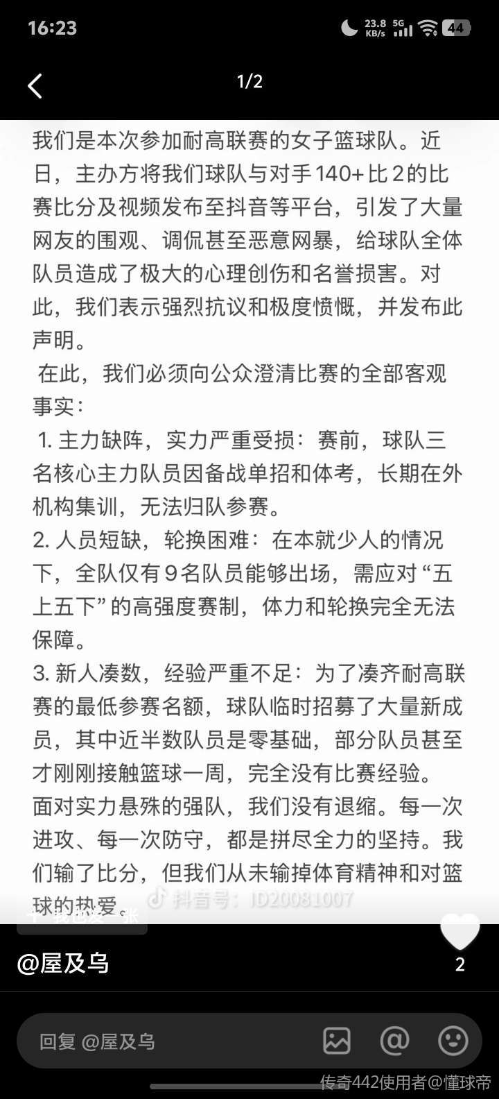 次日,该校取消女子篮球部。