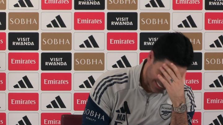在那场令人兴奋的比赛过后,你那天睡得很晚吗(全场又一次哄笑起来,阿尔特塔做出了本文头图中的无奈表情)?
