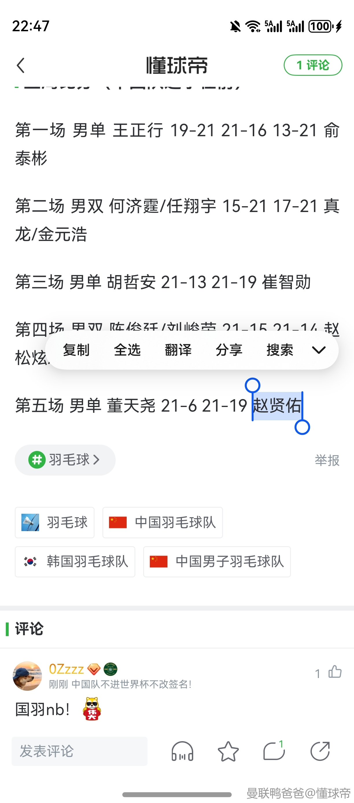 感觉国羽梯队建设还不错啊,这次亚团赛来的基本都是二线选手(只有女双凡贤算主力吧),男女都进决赛了