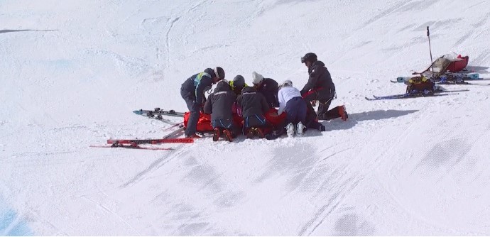 在出发13秒后,沃恩撞到了一个旗门并摔倒在赛道上。医护人员迅速围拢到她身边。比赛中断超过20分钟后,沃恩被安置在担架上,由直升机送离赛场。