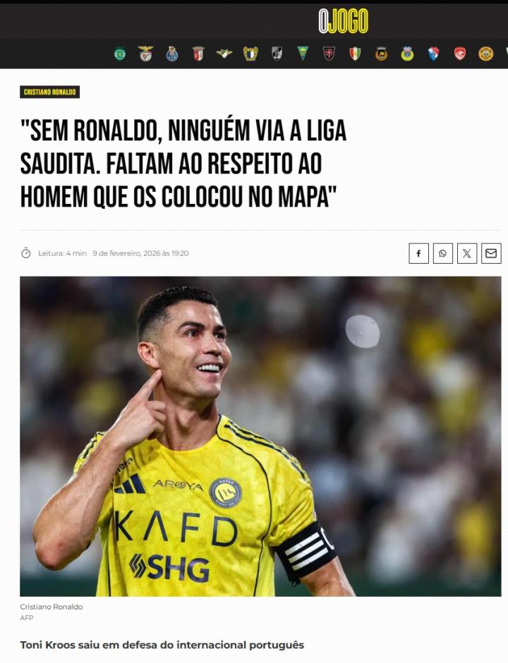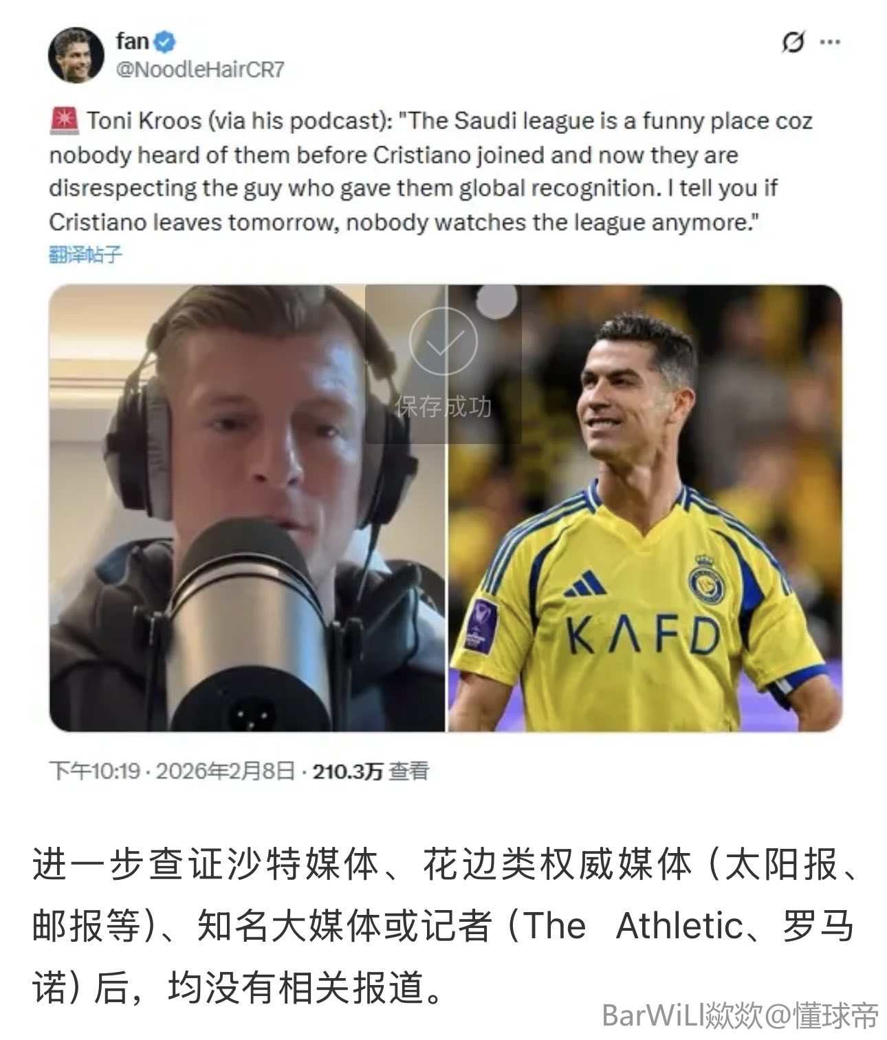 以克罗斯那嘴巴,我觉得他更有可能会说:无论有没有c罗,沙特联赛都毫无吸引力